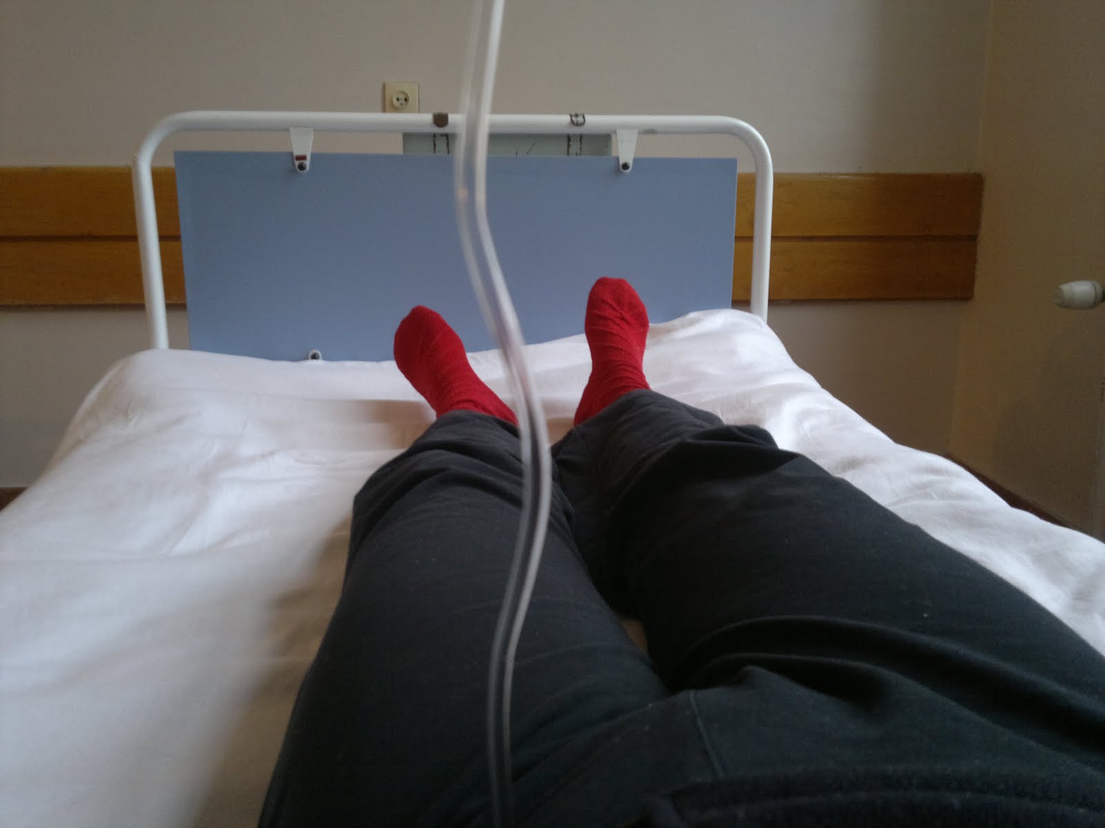 W ciągu 30 minut odbyłam 3 wywiady (z pielęgniarką, dietetyczką i anestezjologiem), przebrałam się w fartuszek operacyjny i połknęłam pół niebieskiej tabletki, po której miałam zasnąć. Zanim ją jednak połknęłam skrzętnie schowałam pieniądze i karty płatnicze, co nie dawało mi spokoju na myśl, że moje rzeczy zostaną zupełnie same. Sala była otwarta i każdy miał do niej dostęp. Nie myślałam o tym zupełnie biorąc z domu plecak. Przyjrzałam się też, czy przez ten operacyjny fartuszek widać nagie ciało. Widać... Na szczęście będę leżała na brzuchu, pomyślałam.